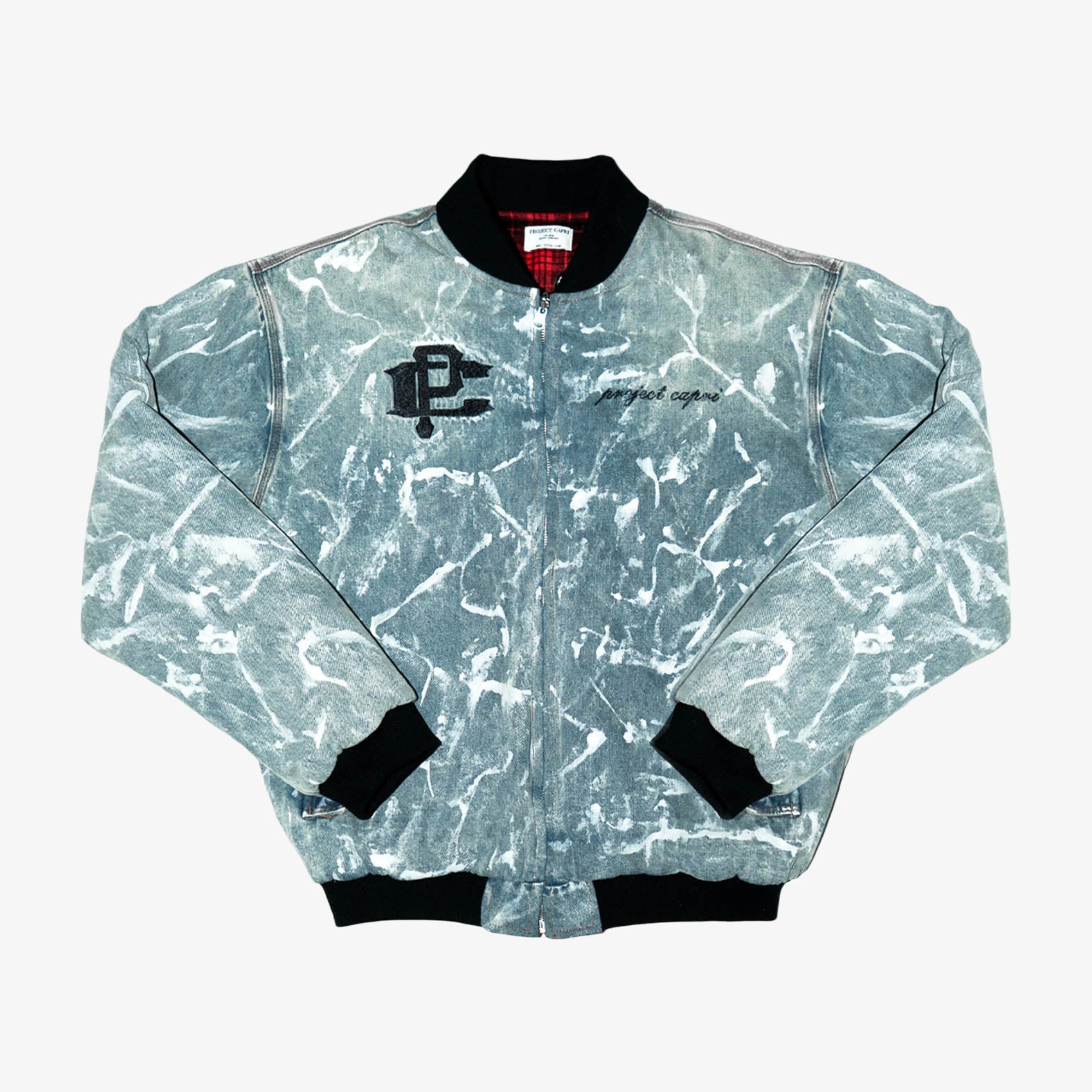 ProjectCapri 'Running Man' Reversible Graffiti Bomber Jacket Red Plaid / Denim (Edition of 150)