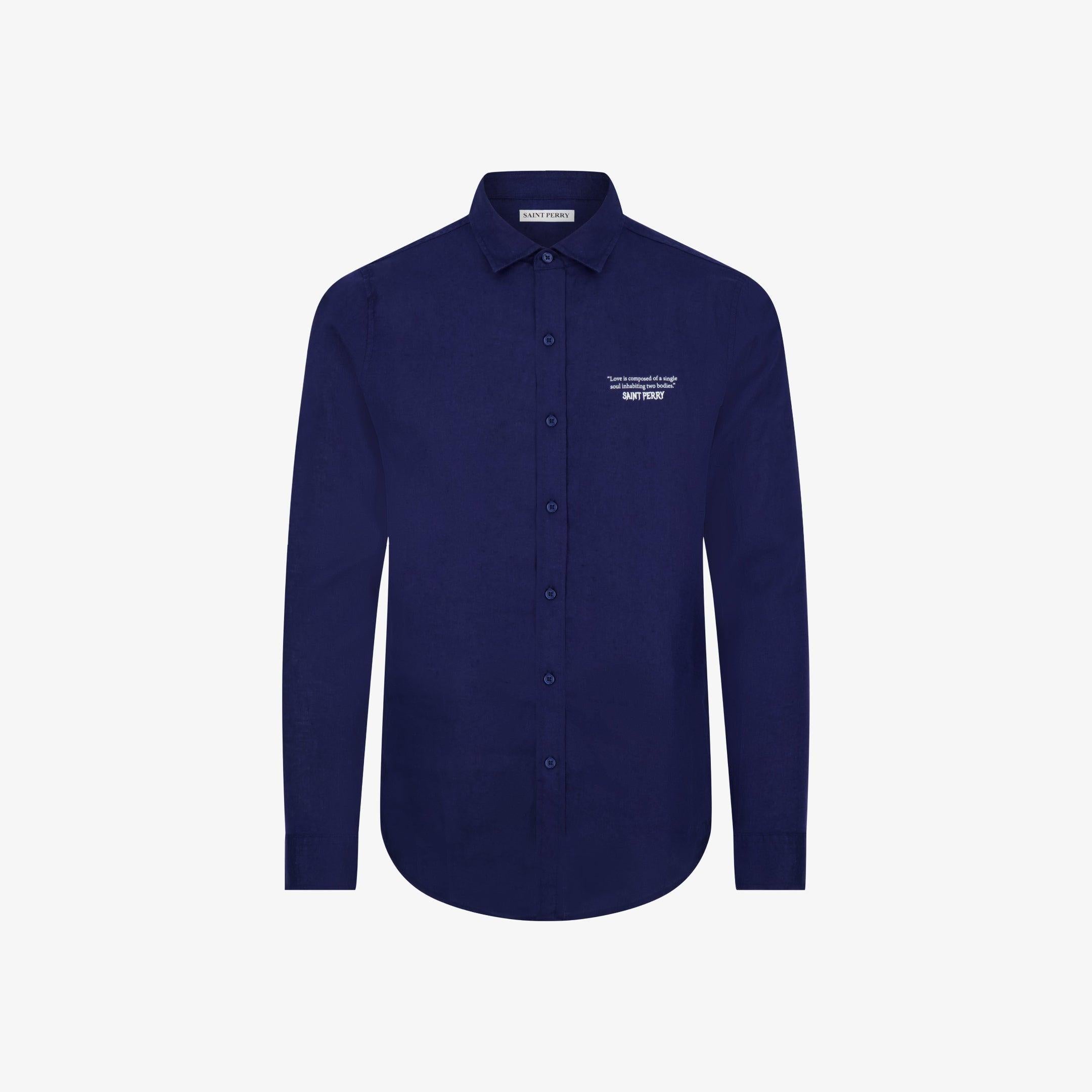 Saint Perry Slim Fit Linen Shirt Blue