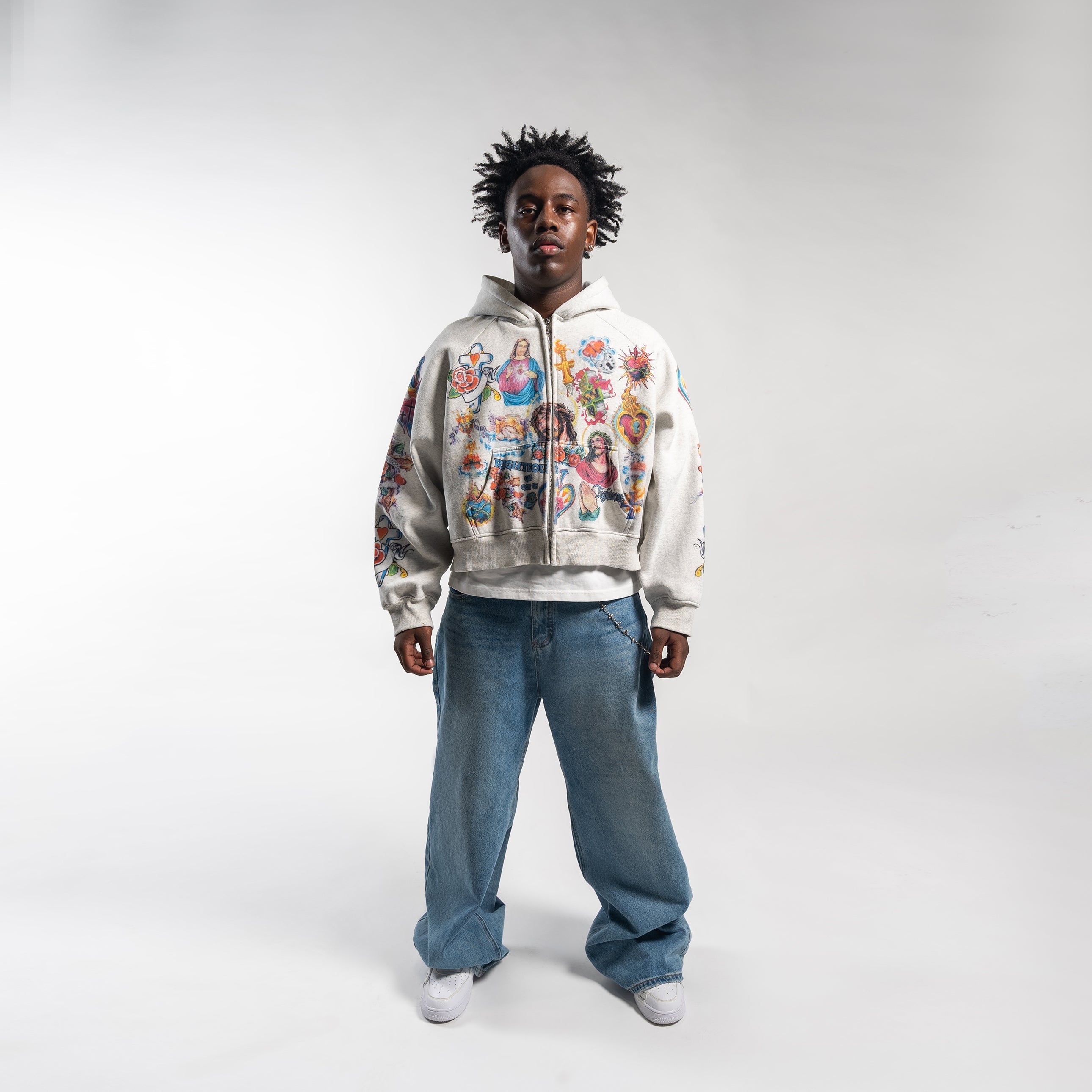 We Are Righteous 'Risen King' Cropped Zip Up Hoodie Grey
